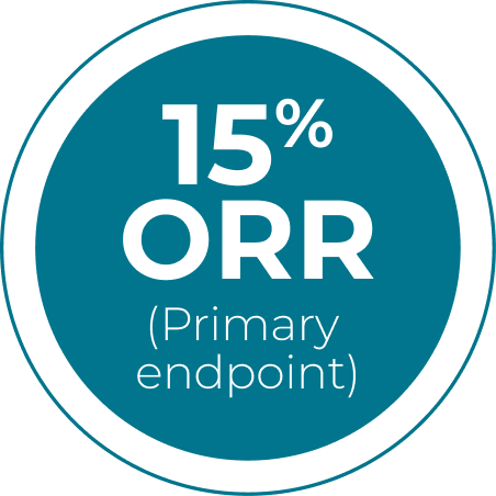 *The ORR included 1.6% (n=1/62) of patients with a complete response and 13% (n=8/62) with a partial response.1,2