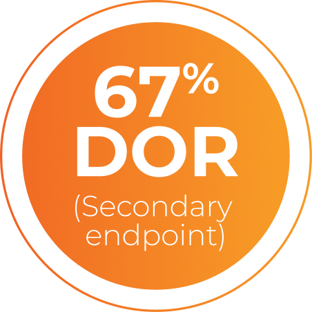 - Median DOR was 9.5 months (95% CI: 7.9 months-NE)